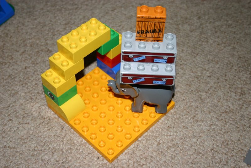 Duplo charades – camel passing through the eye of the needle
