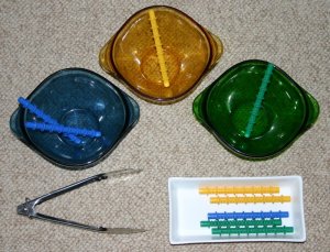 Attribute beads can be sorted more than one way and are quite difficult to pick up. They are a good challenge after simple tonging has been mastered.