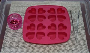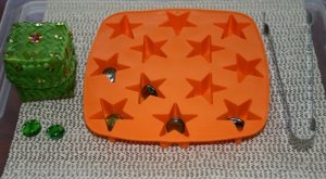 Flexible ice-block trays are an attractive material for children to work with. My girls LOVE this pink tray. (I should mention that it is the 6 and 4 year olds who clamour to do this one even though it is set out for the toddlers!)