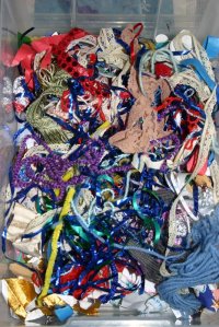 I personally am attracted to the organised collage style, however after an activity day at our local park a couple of years ago I had my eyes opened to the world of what I like to think of as “bargain bin” style gluing. You know the clearance bins they have in the shopping centres with a jumble of odds and ends for bargain basement prices? The ones that scream at you to have a search through because you just might find the bargain of the century lurking underneath the pile. The collage they put out at the park day worked just like this for the children. It was simply a box of assorted stuff in one giant jumble. You should have seen them hunting through it like treasure seekers. They scrabbled happily through, exclaiming with delight when something new and sparkly was discovered.