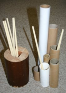 I glued a bunch of cardboard tubes together for the little ones to put the chopsticks in and out of.