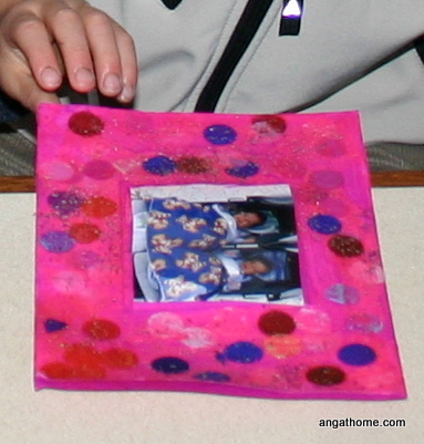 - We make cards every year with the degree of difficulty dependent on the age range of the children and the time and patience available from Mum. These were very simple collage photo cards. I just set out the cardboard frames already cut and a bunch of materials and let the little ones glue on whatever they wished. A picture of themselves was added once the frames were dry.