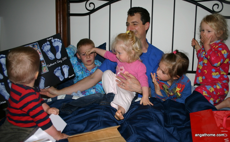 Like most celebrations in our house, Father’s Day traditionally starts in Mum and Dad’s bed with gift giving. The children can’t wait to give their home-made cards and presents.
