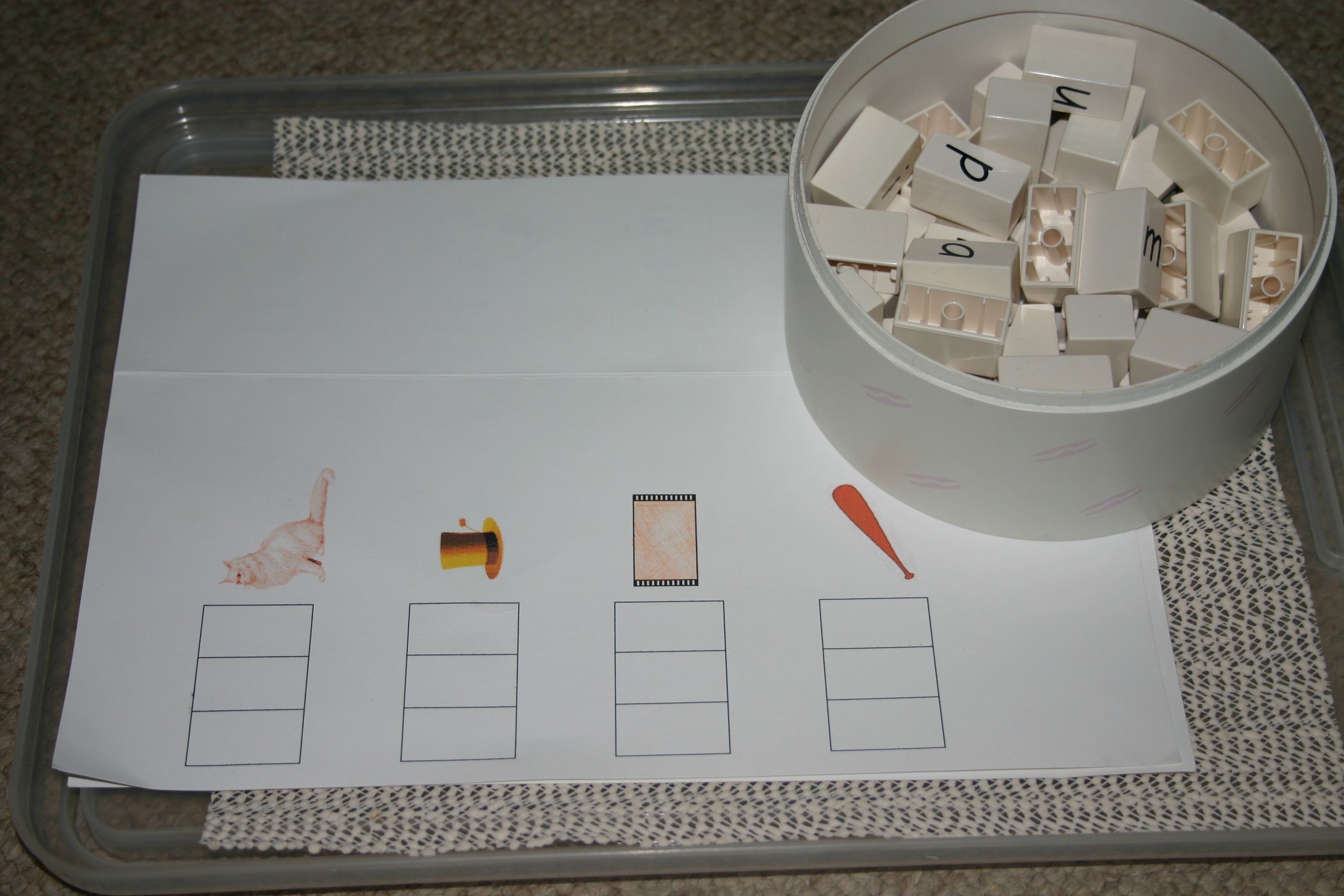 Filed under: Homeschooling | Tagged: 3 letter words, addition, counting, free printable, home-made Montessori, homeschooling, homeschooling with toddlers, initial sounds, learning to read, Montessori for preschoolers, Montessori style tray activities for toddlers, table activities, tot school | 4 Comments »