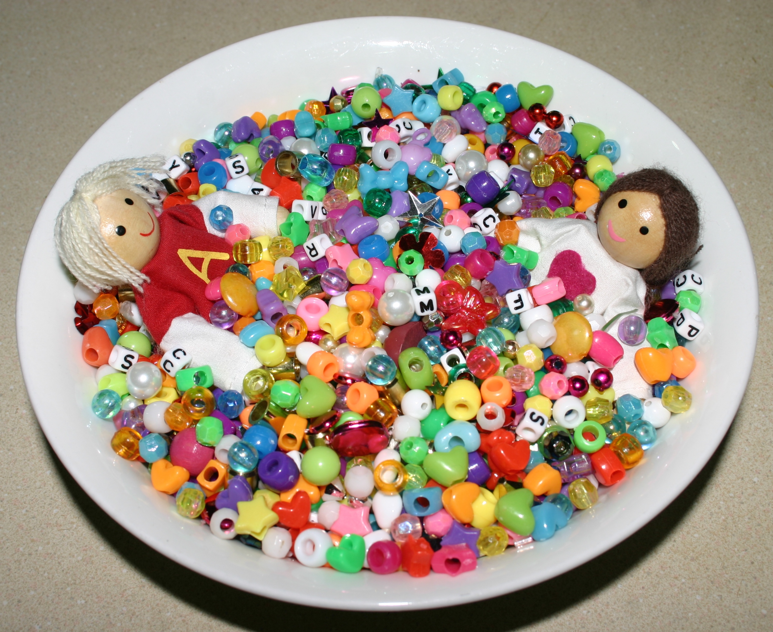 Poking toothpicks into the foam tree and adding large beads to decorate the tree will allow latitude for fine motor skills, colour sorting and matching and one-to-one correspondence.