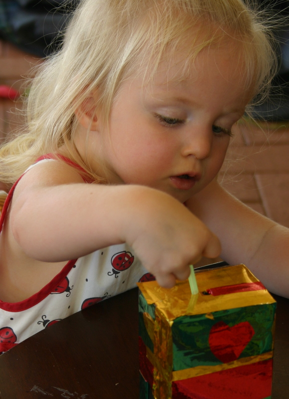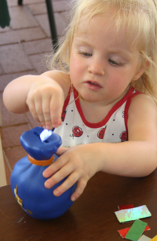 - magnetic pictures and metal tin. (This turned out to be her favourite activity and she went back to it over and over again. Not what I would have guessed!)