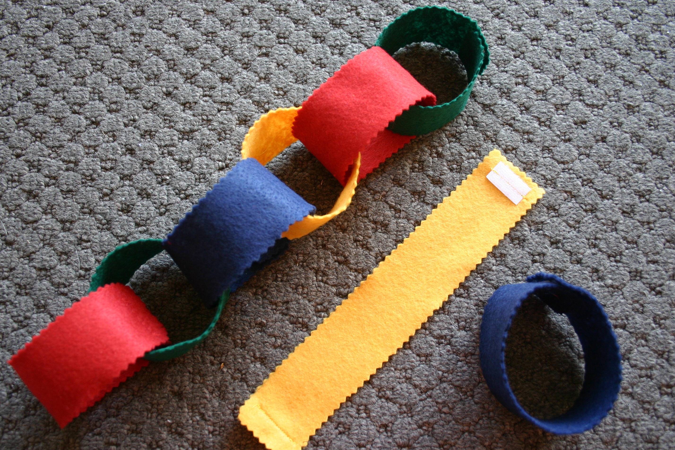 Felt chains. Perfect timing for Christmas! While the rest of the family are producing reams of paper chain to decorate the entire house (or is that just my children?) the youngest can be practising with felt and velcro, to be made and re-made over and over again.