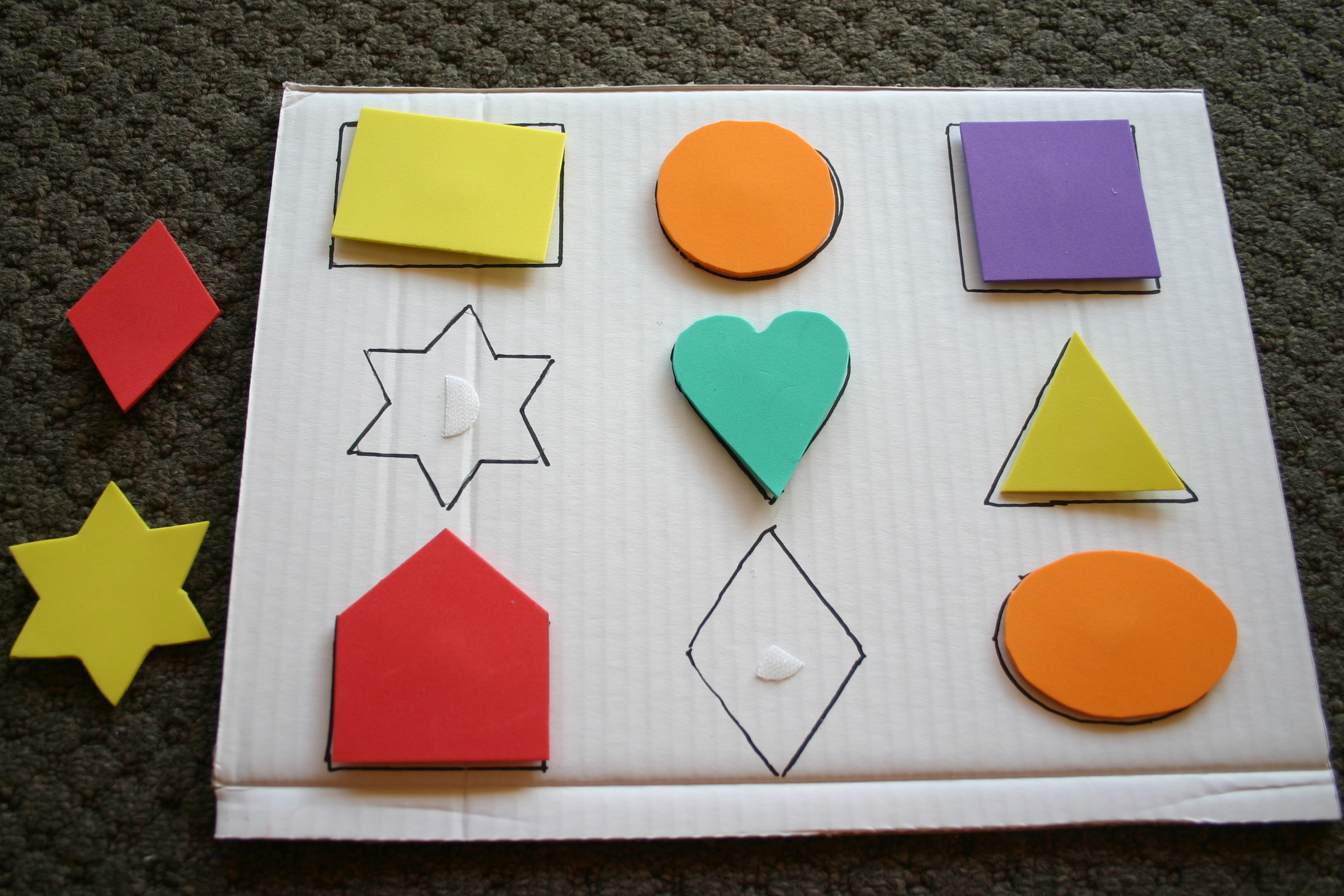 Shape puzzle. A simple make-your-own puzzle with foam sheet cut into geometric shapes