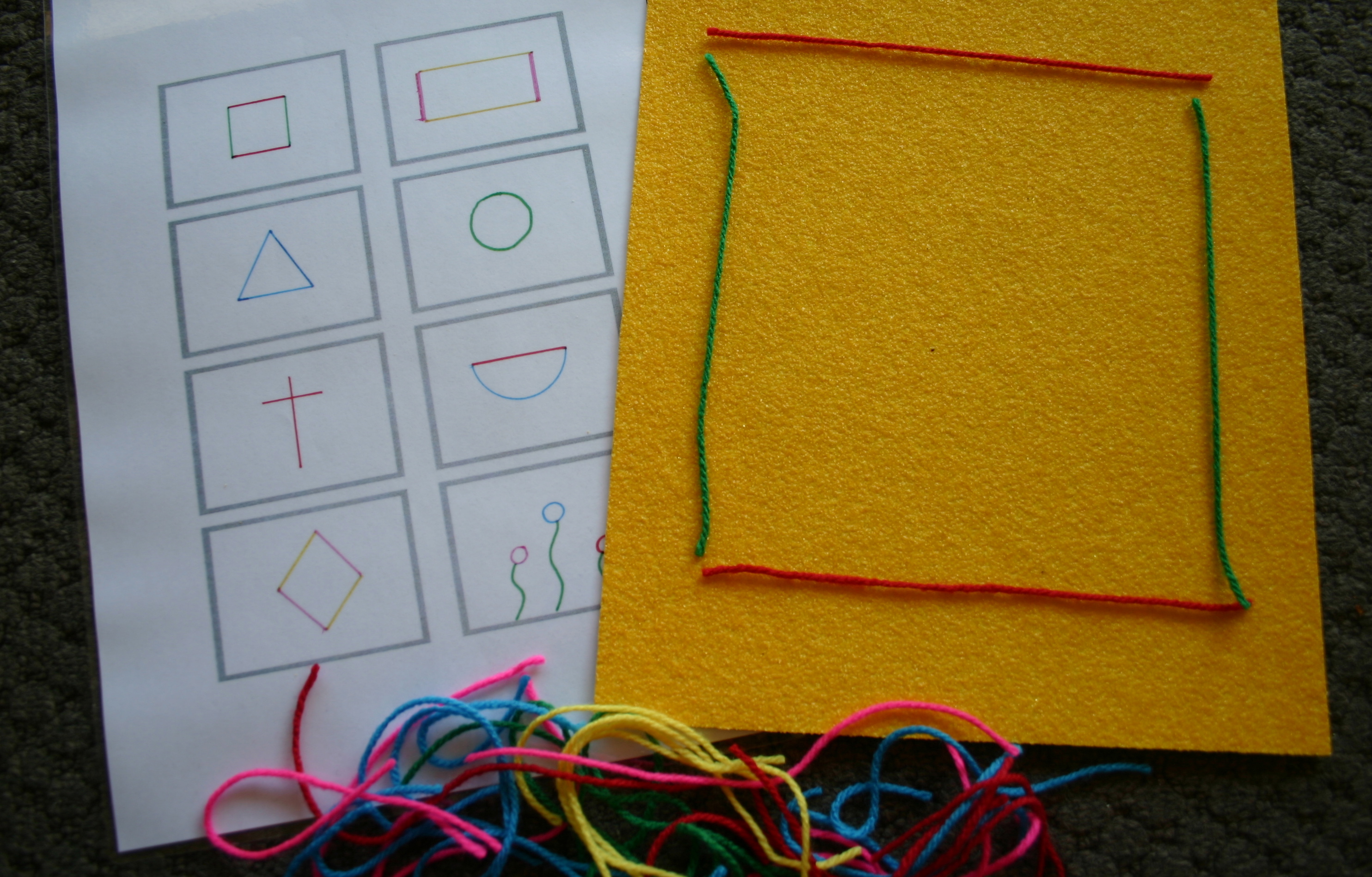 The 3 year olds have been learning how to recognise the numerals 1 to 5 and count small items. Combining building with Duplo as well makes this counting tray attractive, particularly to boys.geoboards IMG_8547Geoboards are a commercially produced mathematics tool. Great for exploring geometric shapes, perimeter, fractions or just for making pictures with elastic bands.dry erase board IMG_8546Personal dry erase boards (whiteboards) with pens and an eraser. sewing cards IMG_8543Sewing and lacing cards. These have a shape drawn for the children to copy. There are plenty of sewing and lacing shapes around to buy or make your own by punching holes around a cardboard picture using a hole punch.button sorting IMG_8542Sorting buttons into muffin trays is a hit with all ages. There is just something about handling all those different shapes and textures. The twins haven’t even gotten their hands on these yet – the 6, 8 and 10 year olds have been monopolizing them! cutting box IMG_8540Teaching toddlers to cut provides them with an absorbing activity that is great for their fine motor skills. The twins have had experience with all the materials in this box so this is just an assortment to chop up any old way they like. Paper streamers, card strips, beads, straws and other oddments such as tinsel or curling ribbon could be included. We let the bits fall back into the box and they can eventually be used for collage later on. The cutting box with free printable patterns I prepared a little while back was too advanced for them so I have put it away to use later on. wood puzzle IMG_8536A collection of good quality wooden puzzles is a good investment. This one came with a variety of patterns for the children to copy, making it much more  long-lasting.gluing IMG_8534Teaching toddlers to glue is another open-ended activity that they will love. Using a glue stick makes it a lot less messy to begin with. A selection of coloured card pieces and diecut shapes from a Kmart scrapbooking assortment pack made this very easy to prepare.rice box IMG_8531Sensory tubs have so many applications. Finding puzzles pieces hidden in rice is pictured above. See here for many more ideas.do a dot IMG_8530Do-a-dot pictures are great for fine motor skills. Bingo dot markers can be used to dot inside the circles or provide small stickers to peel and stick into the dots.  There are tonnes of free printable do-a-dot pictures around if you do a quick google search. teddies IMG_8528Imaginative cooking and doll/teddy play is always a hit. Small teddies, mini pillows, sheets and blankets, along with marbles, jewels and wooden button food makes an interesting selection. Bottle top plates and an old polly pocket toy as well as some screw-top jars finish it off.beads IMG_8526Pony beads and pipecleaners are great for threading and can be made into bracelets or tipped off and re-used next time. dinosaurs IMG_8523Our dinosaur tub includes play dough, plastic dinosaurs, popsicle sticks and popstick fences, a rolling-pin and plastic knife and some artificial leaves for plants and trees. The green bowl has been used to make a pond, cave and home for them as well.